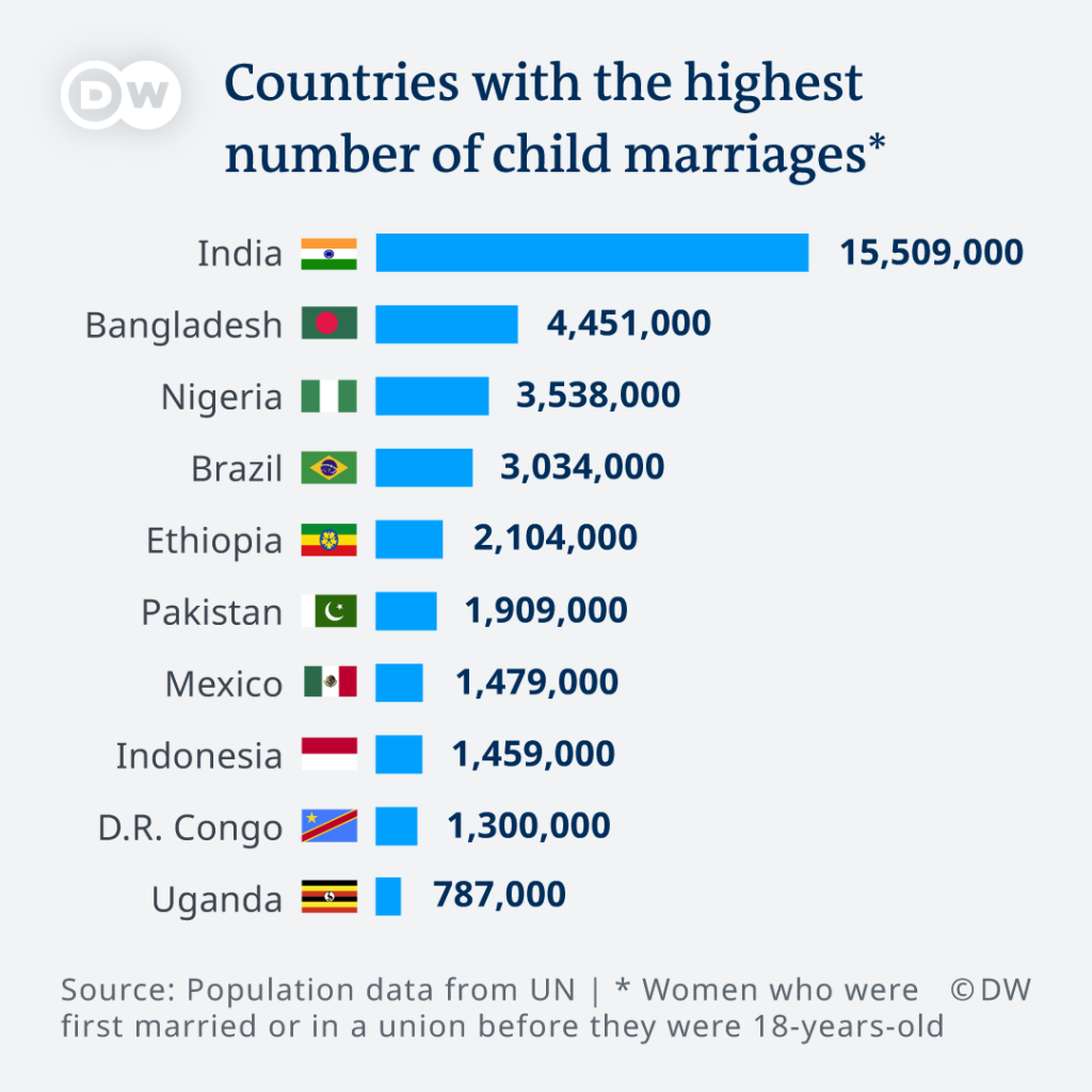 იხილეთ როგორ გამოიყურება იმ ქვეყნების სია, სადაც ადრეულ ასაკში ქორწინებებისა და კავშირების რიცხვი ყველაზე მაღალია: