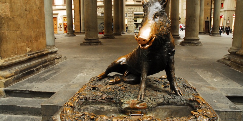 Ponte Vecchio-იოს მახლობლად, Mercato Nuovo-ში მდებარეობს Porcellino, ბრინჯაოს ქანდაკება, რომელიც გადმოცემით წარმატების მომტანია, თუკი მას პირში მონეტას ჩაუდებთ, რომელიც შემდეგ წყლის სპეციალურ რეზერვუარში მოხვდება.