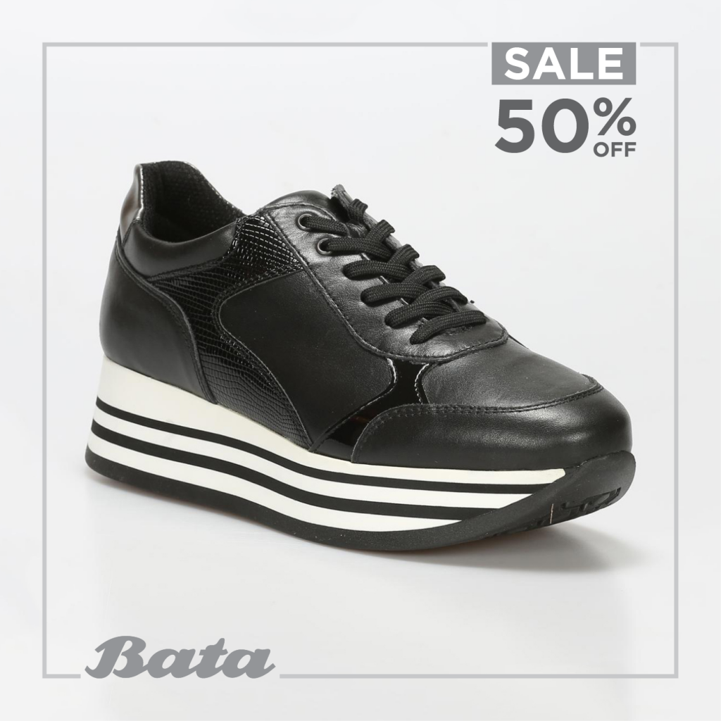 შავი ფერის სპორტული ფეხსაცმელი 219 ლარის ნაცვლად 110 ლარად შეგიძლიათ შეიძინოთ მაღაზიაში BATA.