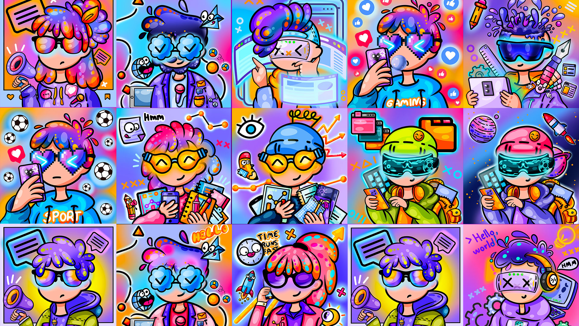 არ მინდოდა, რომ NFT-ების პერსონაჟები მხოლოდ ერთ ადამიანზე ყოფილიყო მორგებული. ვარჩიე, მათთვის უფრო მეტად ნეიტრალური გამომეტყველება მიმეცა. გამაერთიანებელ ნიშნად კი ყველა პერსონაჟს სხვადასხვა სტილის სათვალე და დეტალი დავუხატე, რომელიც, ასე თუ ისე, მათ პროფესიას ეხმიანება.