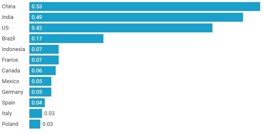 აღსანიშნავია, რომ დღესდღეობით ნამარხი საწვავის გამოყენების შედეგად ყოველწლიურად 35 გიგატონა ნახშირორჟანგი გამოიყოფა. უდიდეს CO2-ის გამომყოფ ქვეყნებს შორისაა ჩინეთი, ა.შ.შ, ინდოეთი და ბრაზილია, შესაბამისად სწორედ ამ ქვეყნებშია ყველაზე ეფექტური ERW ტექნოლოგიის გამოყენება.