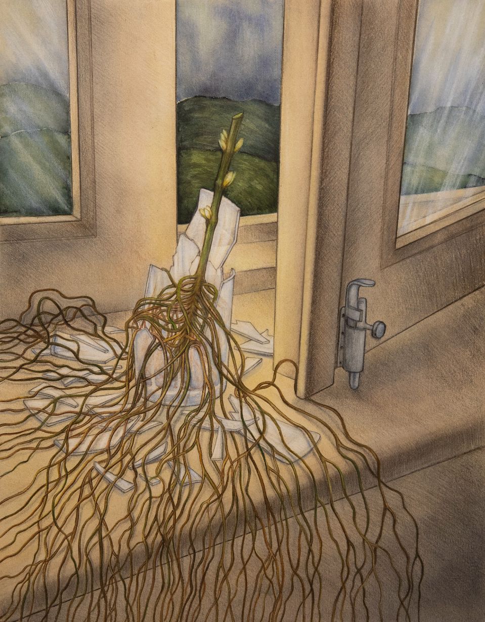 გამოფებაზე წარმოდგენილი ნამუშევრების სერიაში ავტორი ორ მნიშვნელოვან სიმბოლოს, ქსოვილს და ფესვებს იყენებს, შეთანხმებული მნიშვნელობის დაშლის ინსტრუმენტად.
