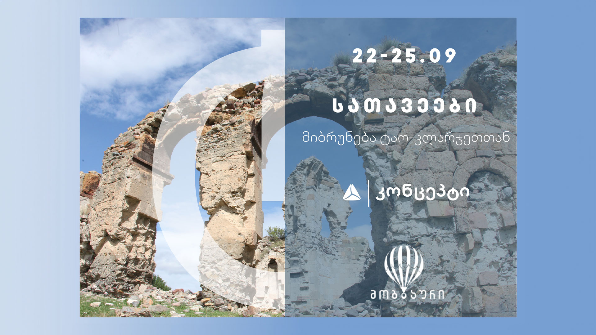 22-25 სექტემბერს თიბისი კონცეპტი და „მოგზაური“ გთავაზობთ რიგით მესამე „კონცეპტ თავგადასავალს“ ოთხდღიან, ისტორიულ ტურს ტაო-კლარჯეთში.