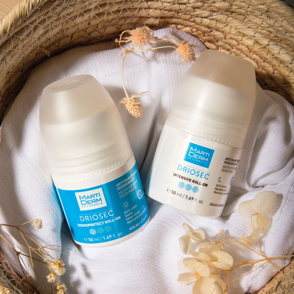 Martiderm – მარტიდერმი ინტენსიური ანტიპერსპირანტი Driosec ღამის ანტიპერსპირანტი და დეოდორანტი გამოიყენება ჭარბი ოფლიანობის სამკურნალოდ. აქრობს და ამცირებს როგორც სუნს, ასევე ოფლის რაოდენობას და აქვს დეოდორანტული ეფექტი მთელი დღის განმავლობაში.