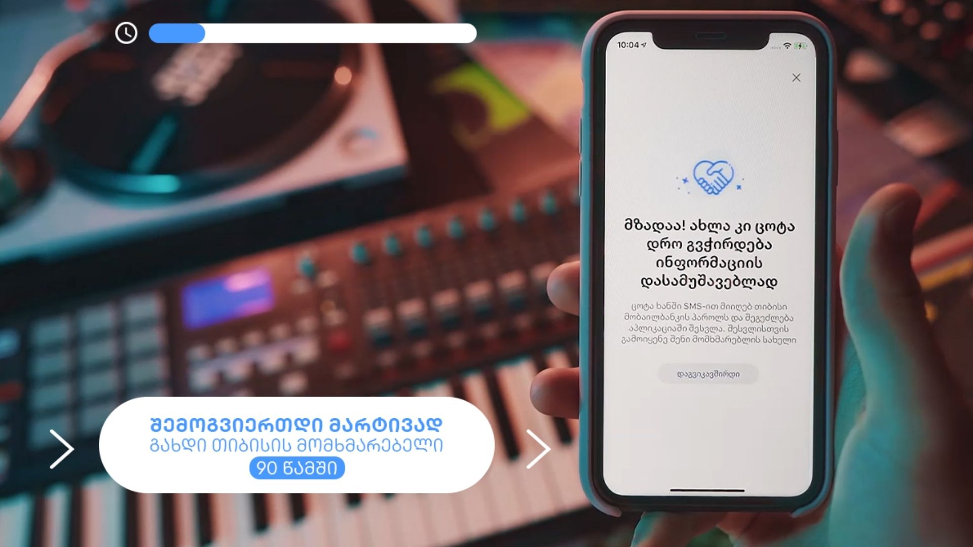 აქ.ახლა – ნებისმიერ მსურველს შესაძლებლობა აქვს, თიბისის მომხმარებელი ძალიან მარტივად, 90 წამში გახდეს და ამისათვის მას ფილიალში ვიზიტი და დამატებითი პროცედურების გავლა არ დასჭირდება.