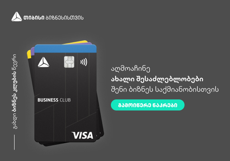 გახდი თიბისის ბიზნეს კლუბის წევრი, გამოიწერე ნაკრები და ისარგებლე განსაკუთრებული შესაძლებლობებით შენი ბიზნესისათვის. დეტალური ინფორმაციისათვის ეწვიე ვებგვერდს: tbcbusiness.ge